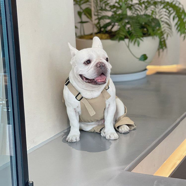 • Durable Khaki Fabric: Our Frenchie jumpsuit is lightweight yet sturdy, perfect for daily wear.