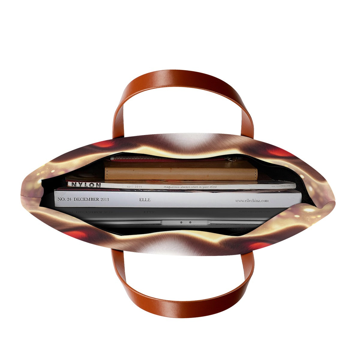 But wait, there's more! With its spacious interior , you'll have room for everything you need and more. From your laptop to your favorite book, there's space for it all. And don't forget the sleek black zipper and lining, adding a touch of sophistication to your everyday look. ⚡