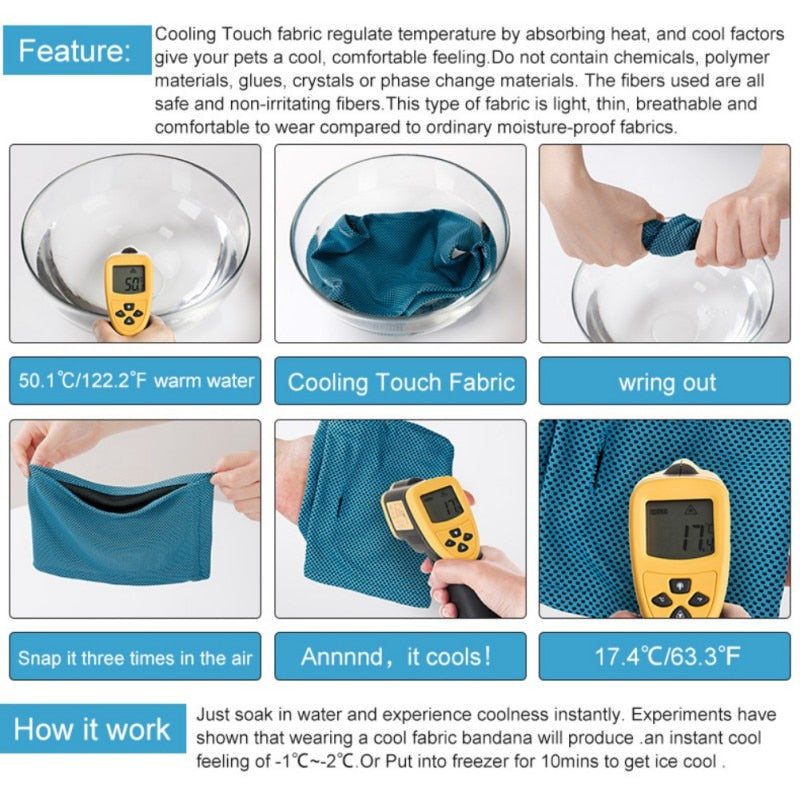 Help your pup beat the summer heat with our Frenchie cooling bandana , specially designed for French Bulldogs. Made from innovative cold-sensing technology fabric, this bandana naturally lowers your pet’s body temperature by 1°C–2°C, keeping them comfortable for hours.