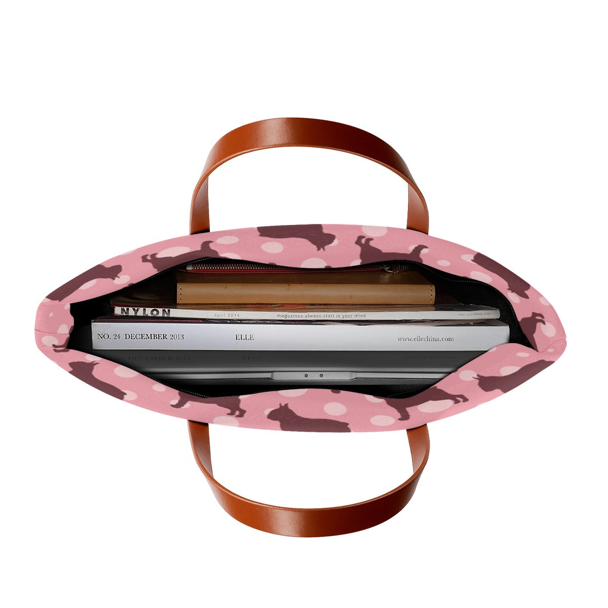 But wait, there's more! With its spacious interior , you'll have room for everything you need and more. From your laptop to your favorite book, there's space for it all. And don't forget the sleek black zipper and lining, adding a touch of sophistication to your everyday look. ⚡