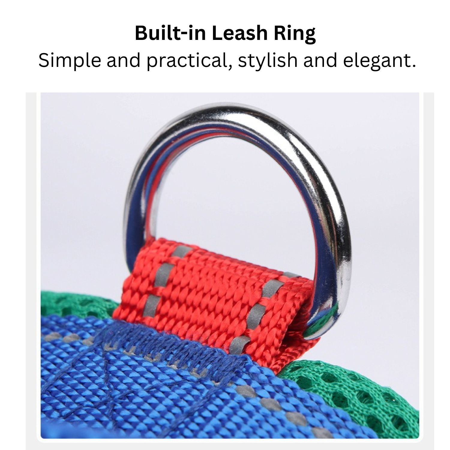 ✔ Built-in Metal Leash Ring – The sturdy D-ring attachment provides a secure connection between the leash and harness.