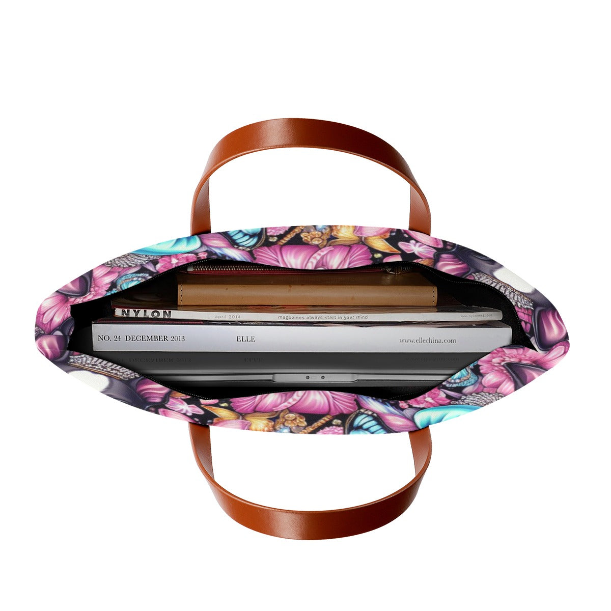 But wait, there's more! With its spacious interior , you'll have room for everything you need and more. From your laptop to your favorite book, there's space for it all. And don't forget the sleek black zipper and lining, adding a touch of sophistication to your everyday look. ⚡