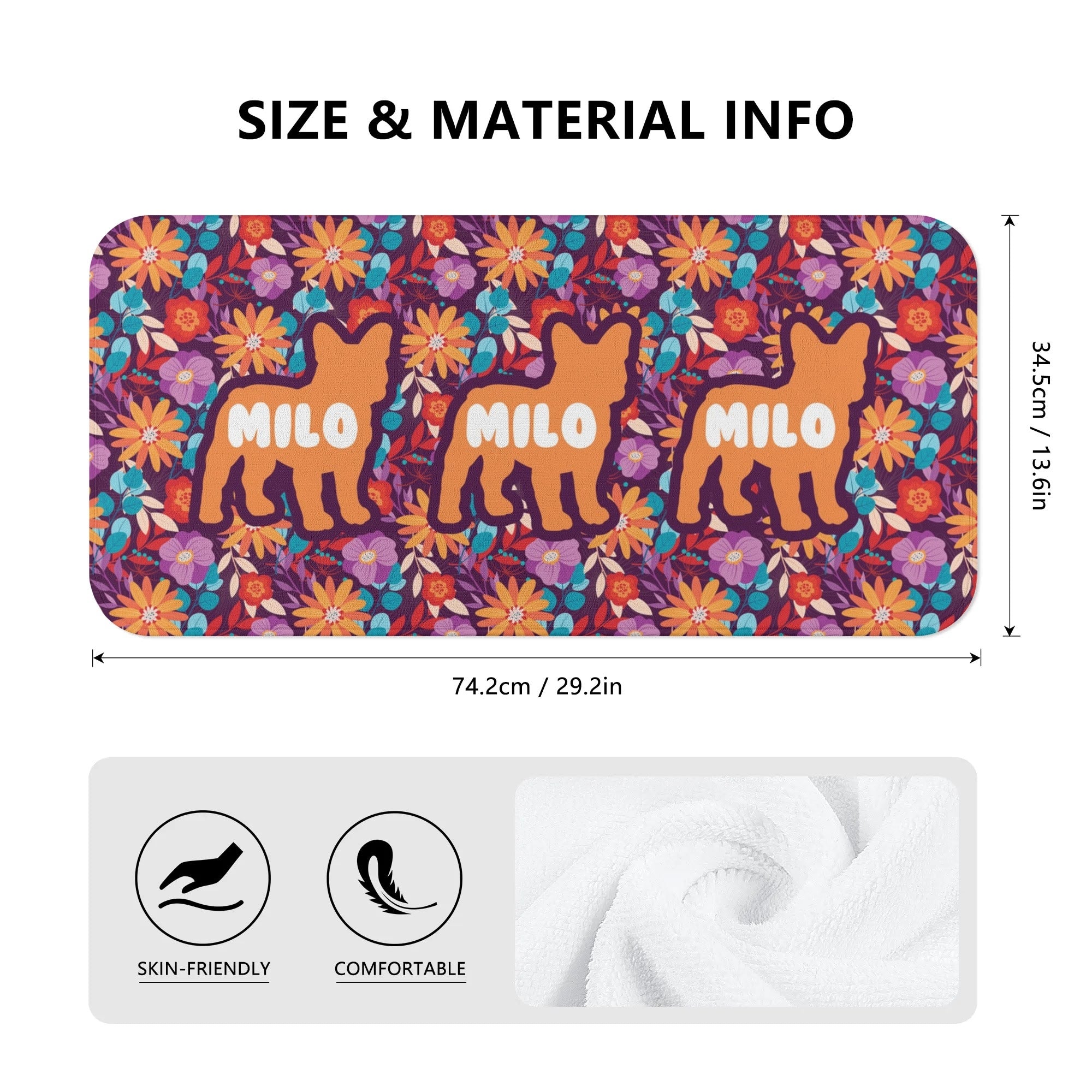 This soft towel, personalized with your French Bulldog's name, adds a splash of color to your routine! ? Made from 80% polyester and 20% cotton, it’s perfect for home, beach, or gym use. ?? Easy to wash—just toss it in the machine at 60°C.
